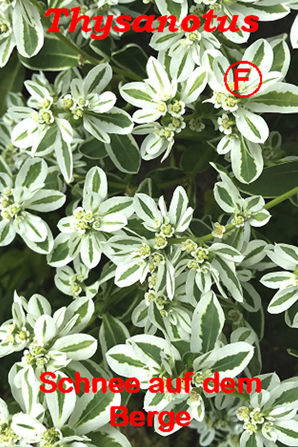 Ein Wolfsmilchgewächs mit dunkelgrünen Blättern, die an den Blatträndern in Schneeweiß übergehen. Nach oben steigt der Weißanteil an. Eine aparte Raffinesse für den Kenner.