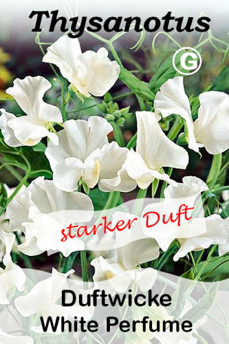 Eine atemberaubende attraktive schneeweiße Blütenfarbe und ein betörender Duft zeichnen diese neue Duftwickensorte aus. Sie bringt einen edlen und wohlduftenden Charme in den Garten. Auch zur Kultur in Kübeln mit Rankhilfe sehr gut geeignet.