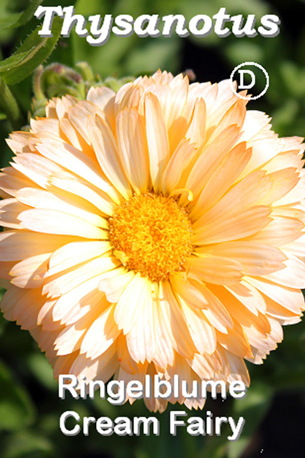 Diese neue Ringelblumenselektion aus cremeweißen Farbtönen hat einen sehr stabilen, aufrechten Wuchs. Ideal zum Schnitt und in Balkonkästen oder Kübeln. Die Blüten sind ebenfalls zur Salbenherstellung gut geeignet. Zartes feenhaftes Farbenspiel.